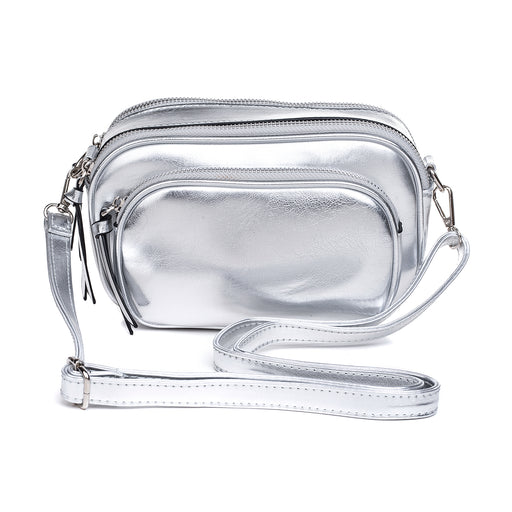 Stay on trend with our silver handbag from the Tara collection. Add some shine and accessorise any look with ease. Two straps included. 16 x 24cm.