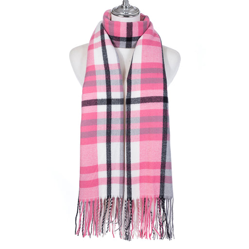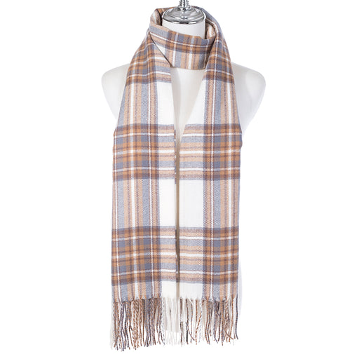 Featuring a timeless plaid pattern and finished with delicate fringe detailing, this versatile accessory is ideal for adding warmth and a pop of pa...