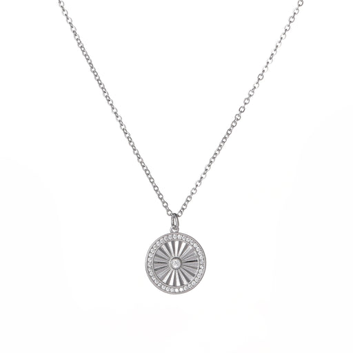Refine your style with our rhodium plated circular pendant necklace, with cubic zirconia stone detailing. Add a touch of sparkle to your look with ...