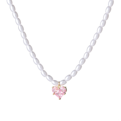 Elevate your wardrobe with our gold plated pearl beaded necklace with pink cubic zirconia heart pendant. Capture attention with ease. Supplied with...