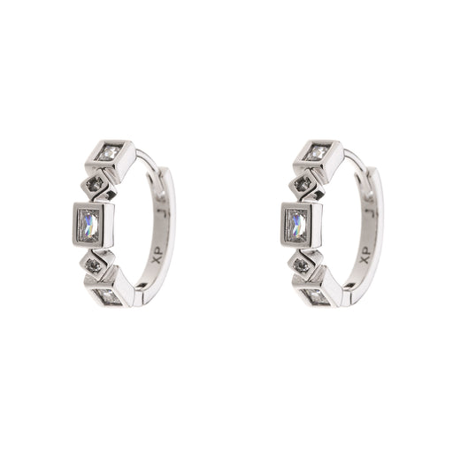 Add a touch of elegance with our cubic zirconium stone rhodium plated hoop earrings, with square pattern detailing. Effortlessly stylish. 20mm. Sup...
