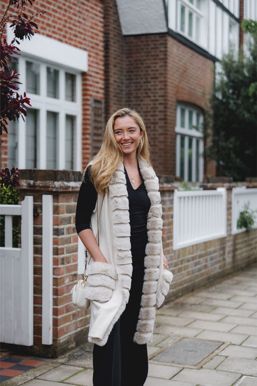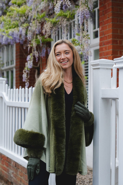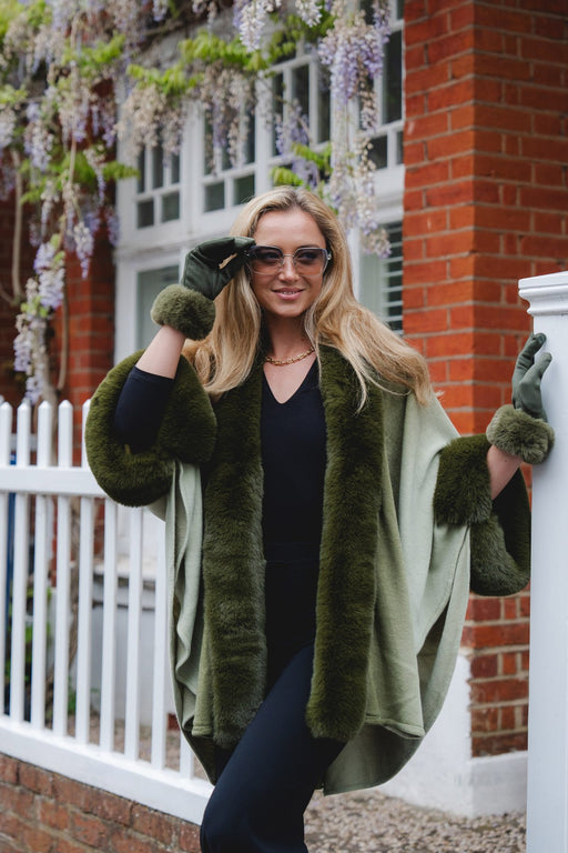 This stylish faux fur-trimmed wrap is available in four striking colourways.Its elegant design, featuring plush fur detailing along the front and c...