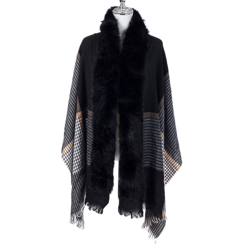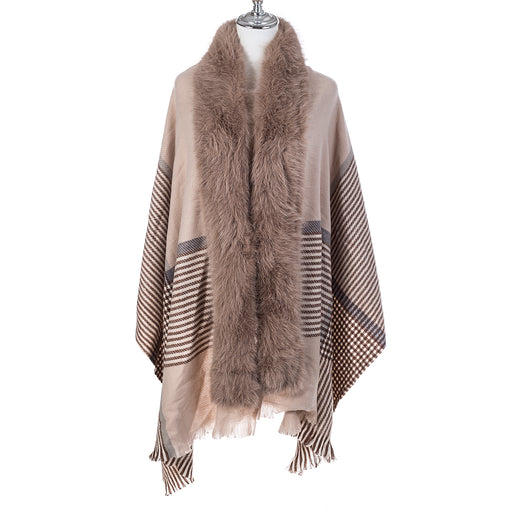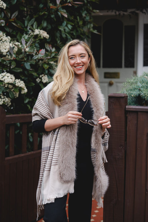 This is a sophisticated addition to your winter accessory collection. Featuring a faux fur trim, this wrap is available in 3 different colours, per...