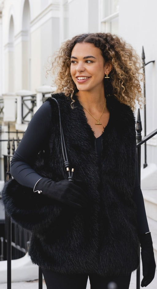This stylish faux fur gilet comes in black or stone, offering a luxurious and cozy feel for the colder seasons. Measuring 90cm x 55cm, it is made f...